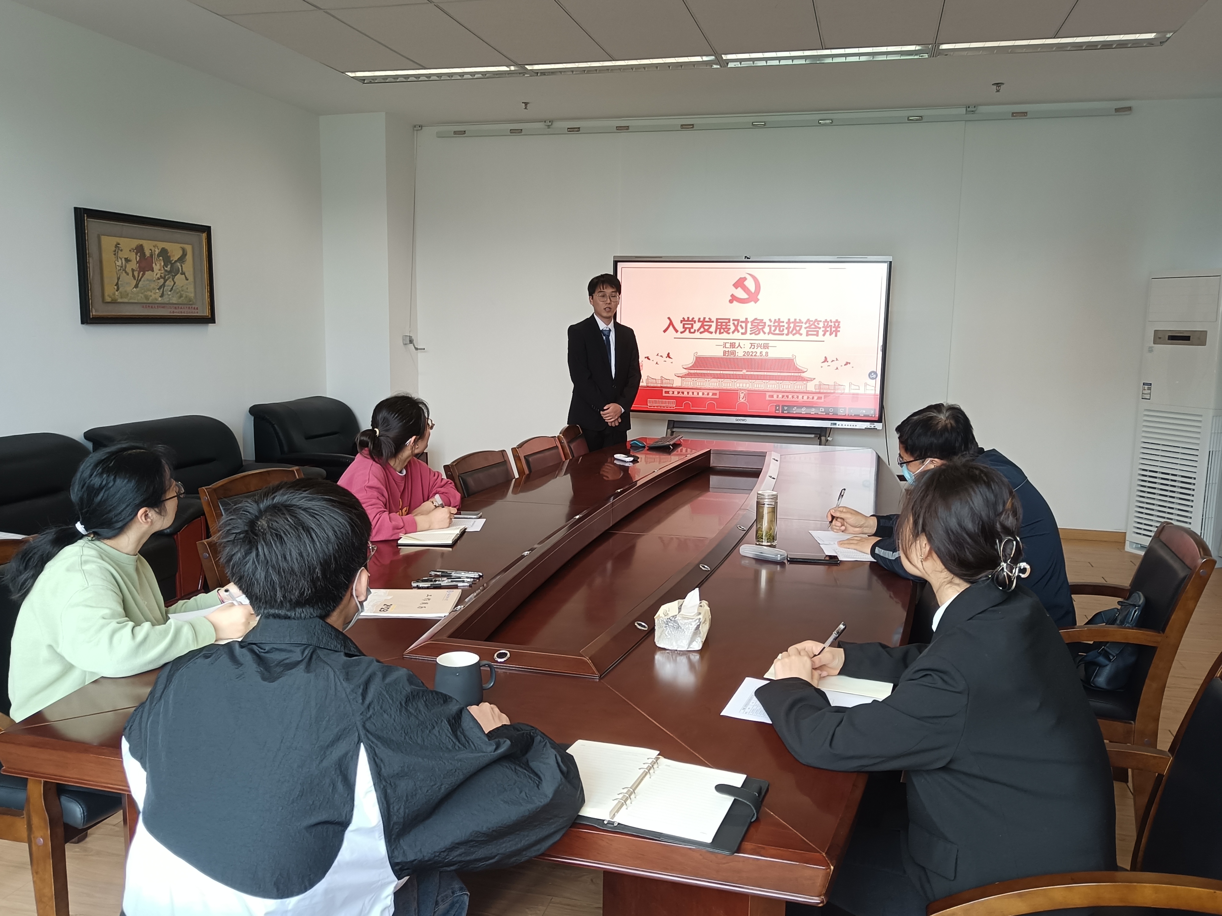 参加答辩的入党积极分子结合个人基本情况,从自我介绍、入党动机和今后如何进一步发挥先锋模范作用等三个方面进行展示。大家情绪激昂,思想深刻,充分展现出了新时代入党积极分子的先进性和较高的服务意识,也让与会评委深切感受到他们对于中国共产党崇高的敬意和强烈的入党意愿。本次面试答辩流程规范,纪律严格,最终考核结果将会上报学院党委审核,并按照“公平、公正、公开、严格”的原则进行公示。