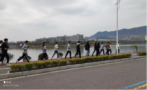 健步一迈,激情澎湃,5月13日,清晨的阳光散在海韵湖的跑步步道上,参加活动的同学早已在图书馆后集合,准备今天的跑步活动。随着组织者的一声令下,同学们迈出了矫健的步伐,开始围着海 韵湖跑步。