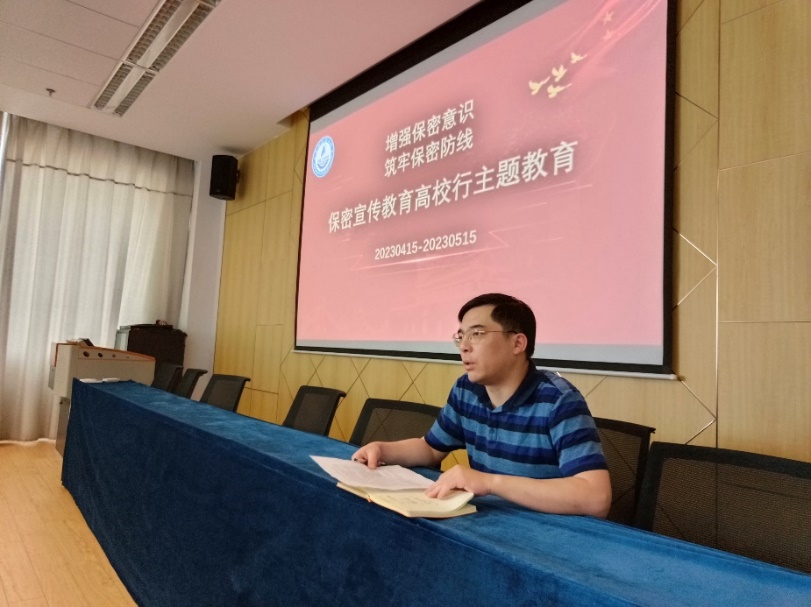 为深入学习宣传贯彻党的二十大精神,加强保密工作宣传教育,强化学院广大师生保密意识和能力,根据上级和学校保密办的安排,37266威尼斯自4月中旬至5月中旬,组织开展了多场以“增强保密意识,筑牢保密防线”为主题的保密宣传教育活动,进一步强化做好新时代新征程保密工作的责任意识和本领能力。37266威尼斯教师和学生代表参加了本次主题教育活动,学院党委书记翟纯纯、副院长(主持工作)张建、副院长李磊参加了本次活动。