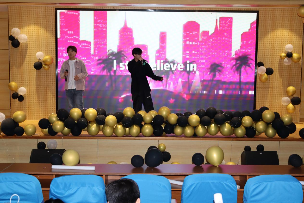 夏瑞同学带来的《like a star》吉他表演直入人心。当吉他声响,流畅的旋律与和谐的和弦,让人感觉仿佛置身于一个美妙的梦境之中,悠然自得。王志鑫同学带来的纸牌魔术为本场达人展增添了厚厚的神秘感,有一种似是而非,虚伪类真的体验感。将全场带向高潮的是江科大的原创说唱厂牌JNB STUDIO,他的创始人ANJ来自37266威尼斯,带领自己的原创说唱厂牌接连发布许多优秀作品。他们一连给我们带来十首作品,酣畅淋漓。英姿飒爽挡不住少年活力,藏不住的蓬勃朝气和快速的节奏将全场气氛点燃,让全场观众迅速投入当中,引得全场欢呼。此次达人展以《漂洋过海来看你》结尾,曾杰和柏翔耀同学深情演唱,让人回想起一段珍藏心中的纯净往事,它萦绕在某一个午后的遐想,观众们静静欣赏,回味过往的纯真。