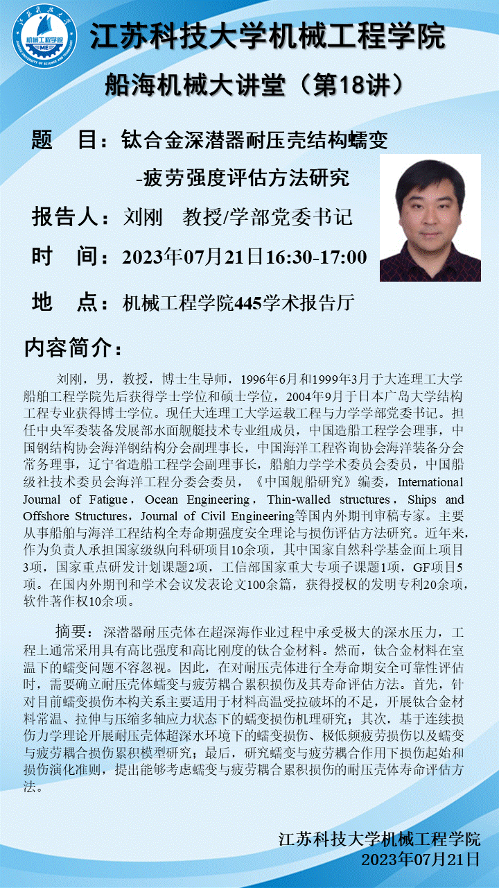 学术报告——钛合金深潜器耐压壳结构蠕变-疲劳强度评估方法研究