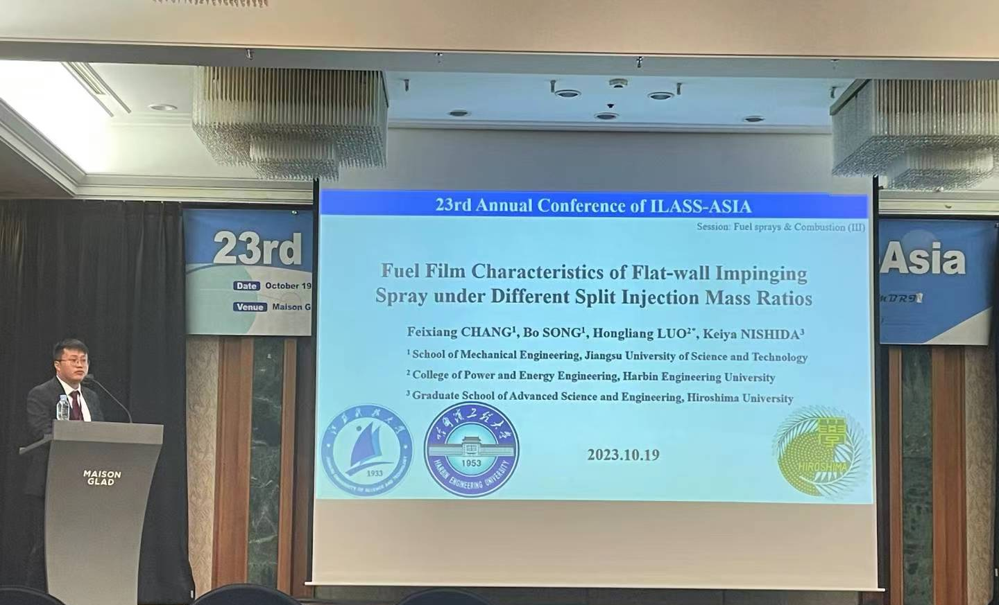 第23届ILASS-Asia (Institute for Liquid Atomization and Spray Systems)年会于2023年10月下旬在韩国济州岛举行。宋波教授带领的燃气轮机及流体机械研究团队的常飞翔老师,在会议上宣读题为“不同喷射质量比条件下碰壁喷雾的附壁油膜特性”论文,探讨不同的喷射质量比对附壁油膜形成特性的影响机理,研究意义针对燃机的低碳燃烧。报告带来现场专家学者的交流互动,和后续科研合作。