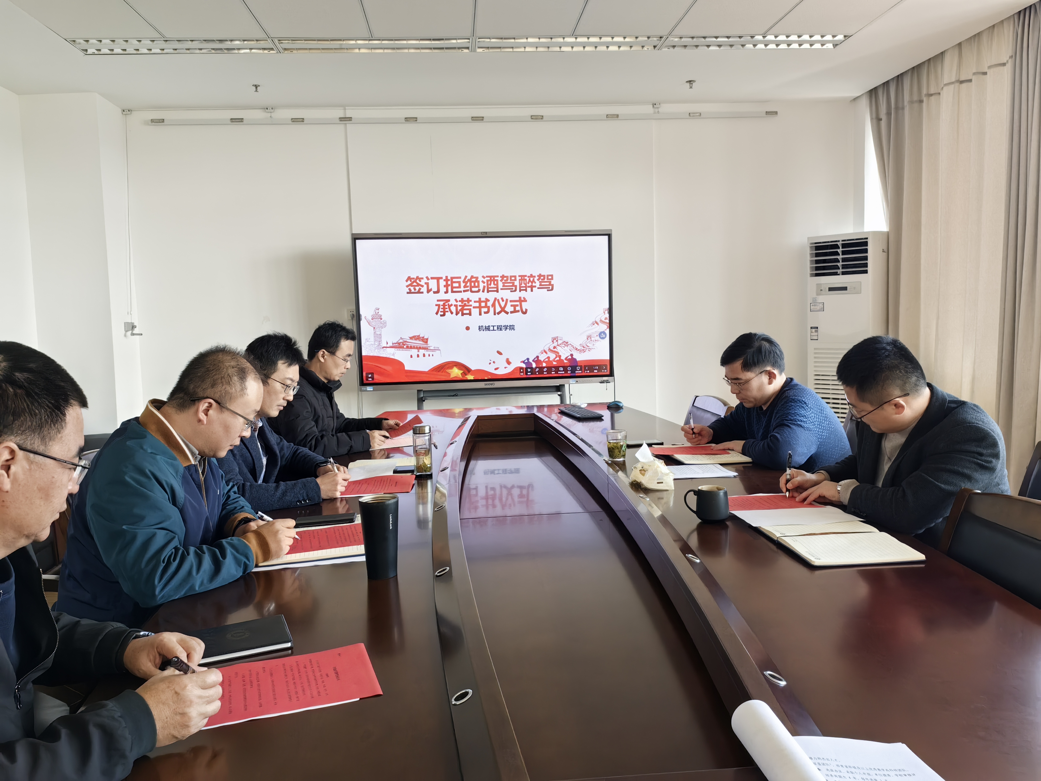 最后,学院党委委员在《拒绝酒驾醉驾承诺书》签下名字,一笔一画都坚定有力,是签名,是对自己的警示,更是承诺。