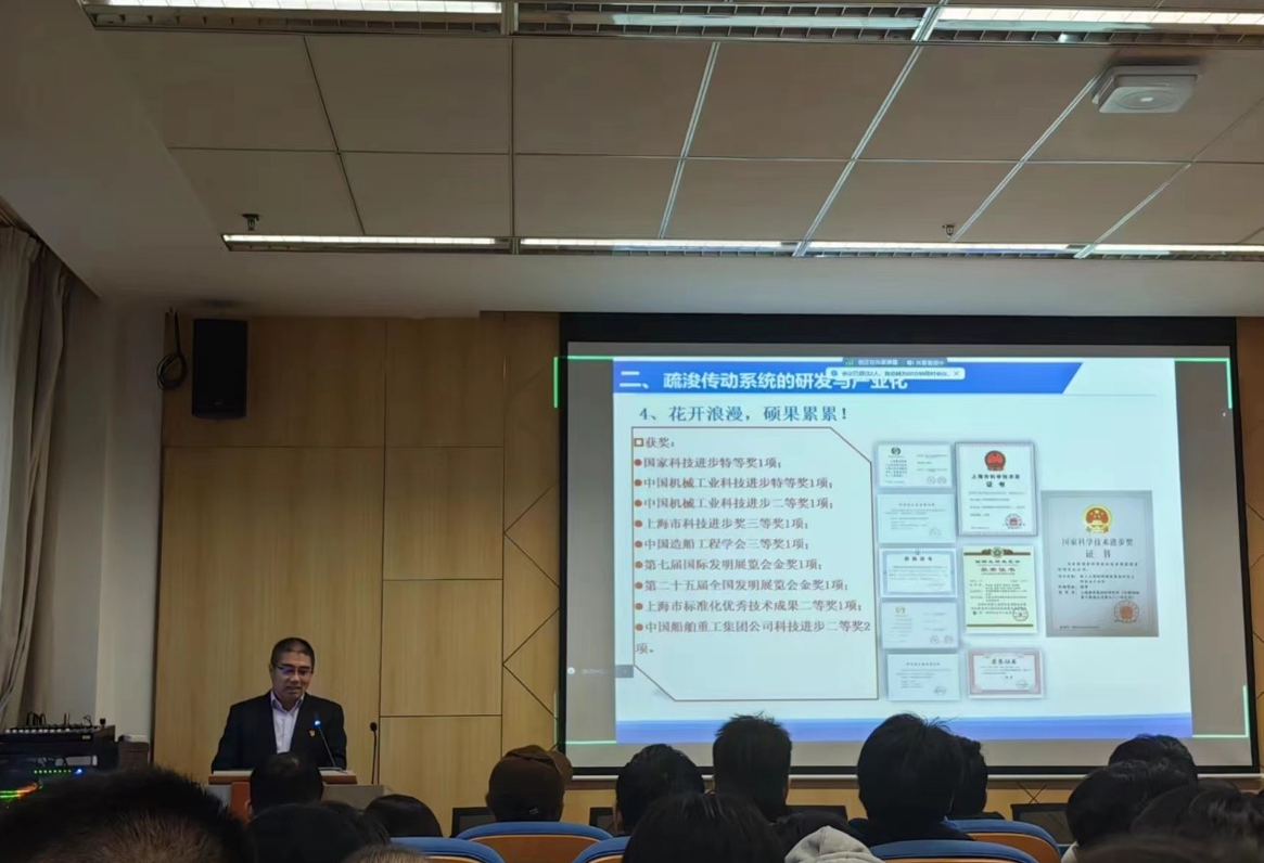 严忠胜研究员首先介绍了疏浚传动系统的自主研发与产业化所取得的成就并重点讲解了大国重器—挖泥船。接着,严忠胜研究员针对挖泥船施工特点,着重介绍了大型绞吸式挖泥船的挖掘能力、淤泥的搬运和处理、绞吸装置的维护及检修等几大技术挑战。最后,严忠胜研究员总结了项目成功所需的经验和关键技术点,并展望了大型挖泥船未来发展方向,鼓励师生们积极参与科学研究,为目前的“卡脖子”问题研究作出贡献。