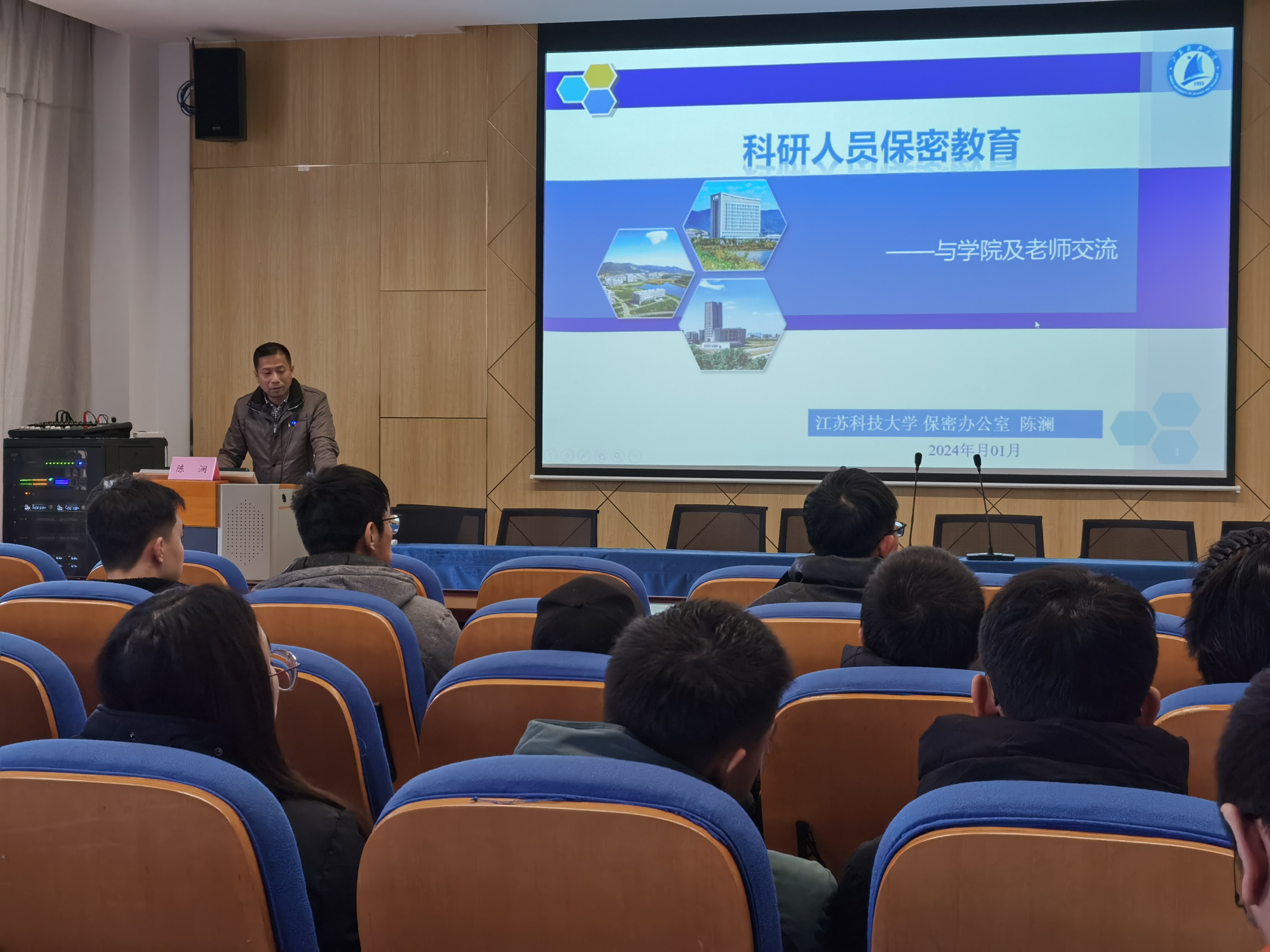 陈澜主任围绕科研保密工作意义与责任、保密工作的基本概念和要求、违反保密法律法规的责任追究等方面开展了专题教育。他指出,目前学校广大师生在开展保密工作时须做到两个“识”,一是“保密意识”,二是“保密知识”。陈澜强调了“涉密上网、上网不涉密”思想,讲述了在日常生活中,个人是如何在不经意间造成泄密事件,给在场人员敲响了警钟。最后,陈澜主任结合学校保密工作经验和经典案例,针对保密制度内容进行讲解,重点说明了作为师生在涉密工作中的注意事项及要求。
