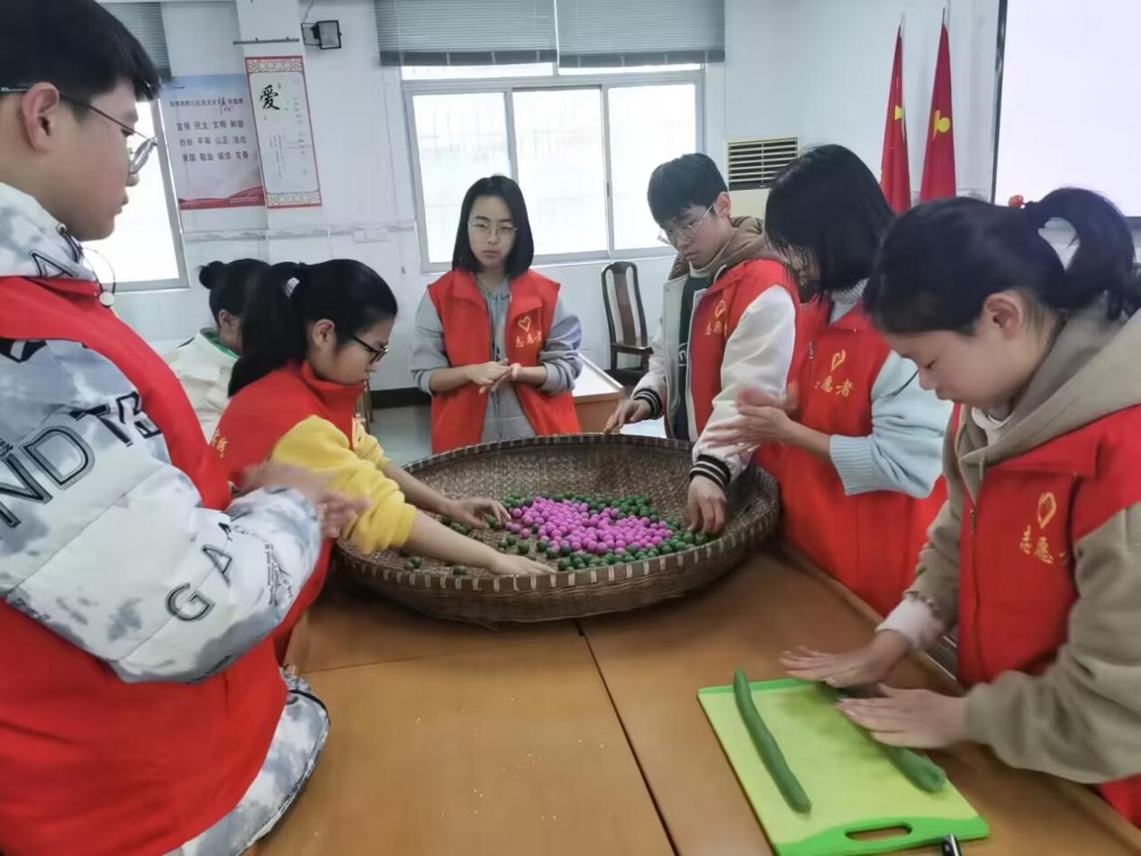 1月30日,实践团成员董凯玲在江苏省常州市武进区为残疾人家属送上亲手制作的团子,让他们感受到社会的关怀与爱护。