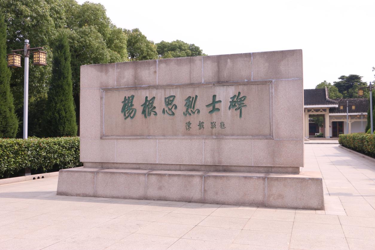 杨根思烈士陵园,位于泰兴市根思乡宣泰路173号。1951年,为祭奠、缅怀特级战斗英雄杨根思烈士,由当地人民自发筹资修建。庄严肃穆的烈士陵园,苍松翠柏,碧水环绕。踏上一座小桥,“不相信有完不成的任务,不相信有克服不了的困难,不相信有战胜不了的敌人”的宣传标语映入眼帘,令人肃然起敬。跨过此桥,一尊高达8.28米的烈士塑像,再现了杨根思牺牲时的壮烈情景:他左手握拳、右手紧抱炸药包,脚踏侵略者钢盔,怒视前方,仿佛随时会扑向来犯之敌。