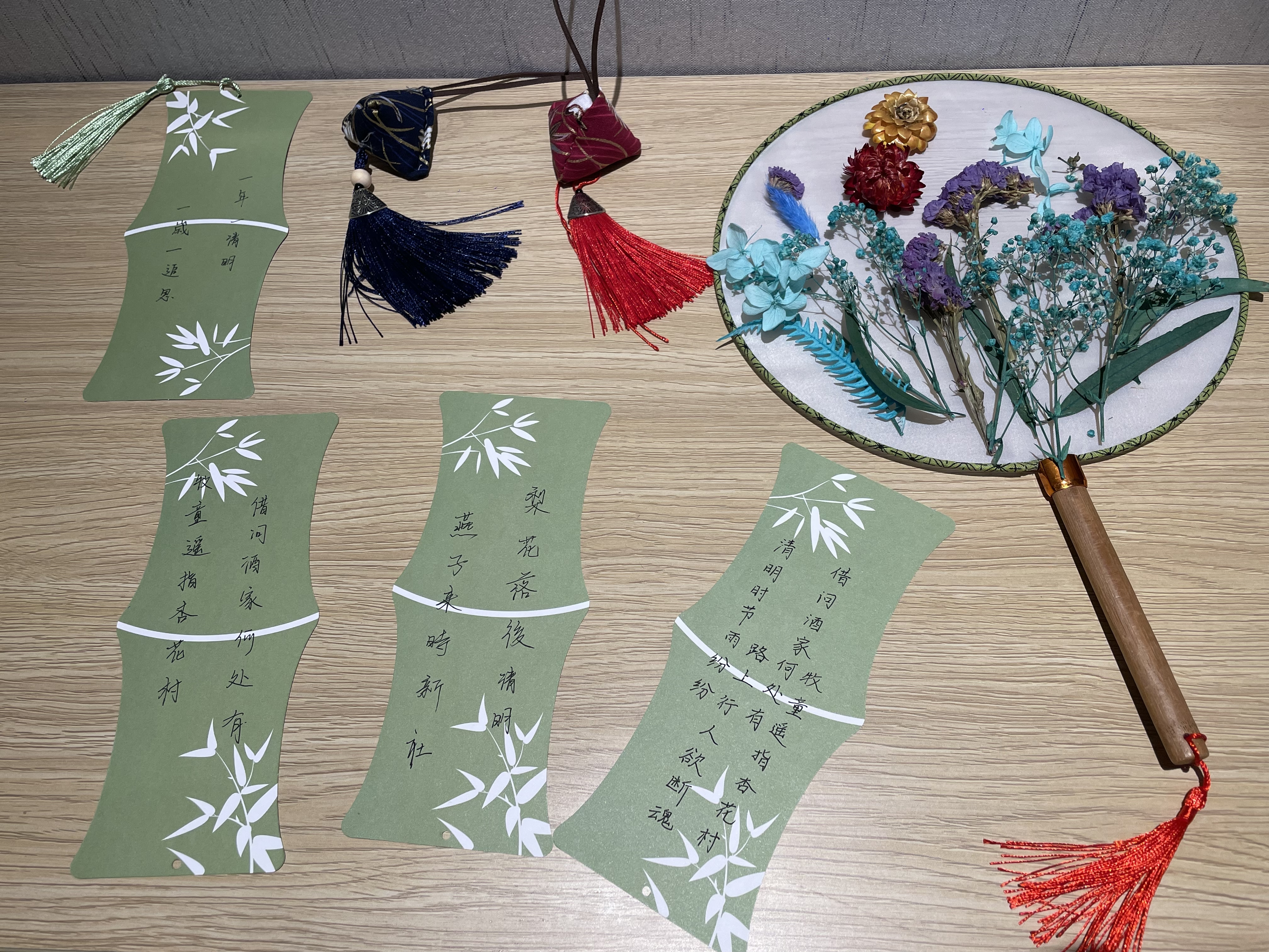 在这次活动中,参与者们还用竹节为材料,经过细致的打磨和雕刻,制作出一款款精美的书签。他们不仅仅雕刻了文字,更是选取了一些赞美春天的诗句,如杜牧的《清明》、杜甫的《春夜喜雨》等,将对春天的美好赞颂融入到手工艺品中。