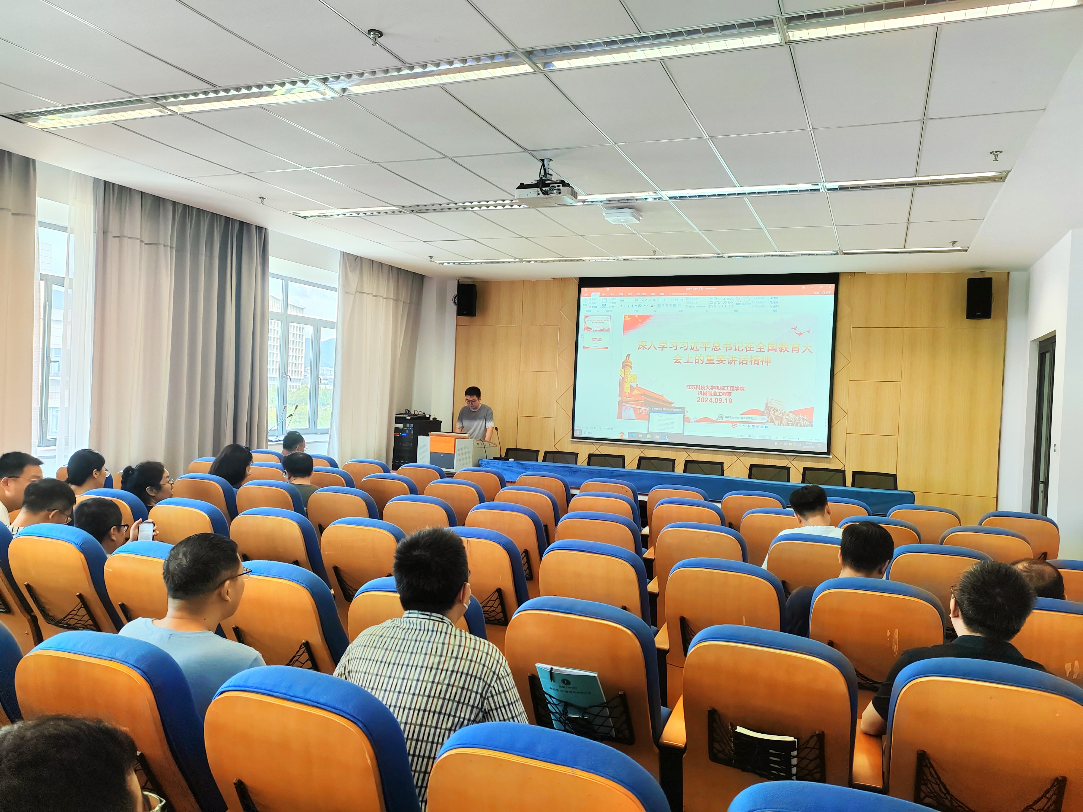 各系部教职工集体观看《教育家精神》,深入学习习近平总书记在全国教育大会上的重要讲话精神《中共中央国务院关于弘扬教育家精神加强时代高素质专业化教师队伍建设的意见》文件精神,理解教育强国、科技强国、人才强国的内在一致性和相互支撑性,思考如何进一步落实立德树人根本任务,弘扬教育家精神;深入学习新学期工作会议精神,重点领会周南平书记、嵇春艳校长讲话要求。