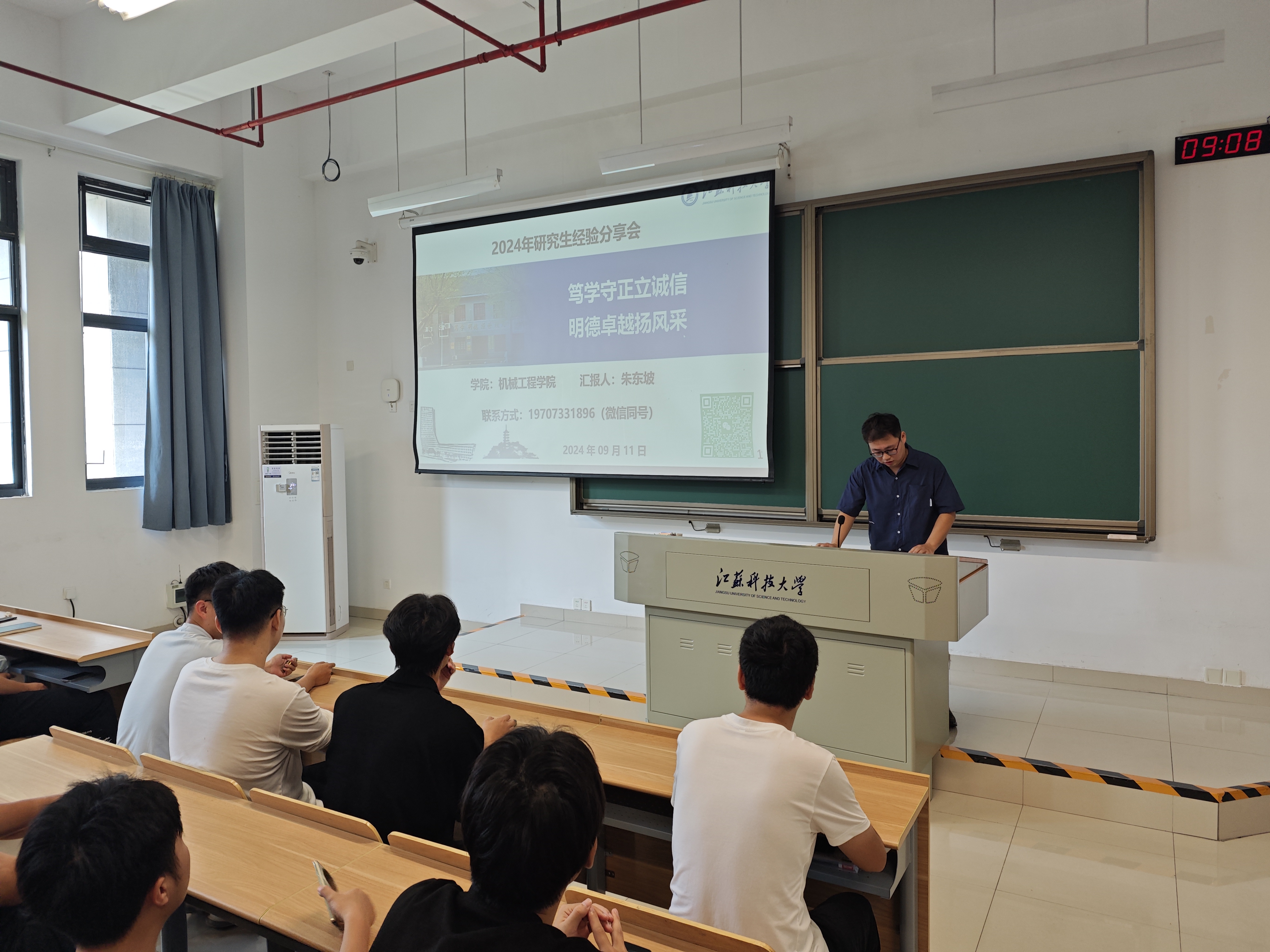 分享会第一部分,研三学长们倾囊相授,干货满满。戴逸群学长首先登场,他着重分享了研究生上课的注意事项。戴逸群学长强调,研究生课程与本科课程有很大不同,更加注重自主学习和深入研究。在课堂上,要积极参与讨论,主动与老师和同学交流,提高自己的思维能力和表达能力。同时,他还提醒学弟学妹们要认真对待每一门课程,按时完成作业,为今后的科研工作打下坚实的基础。