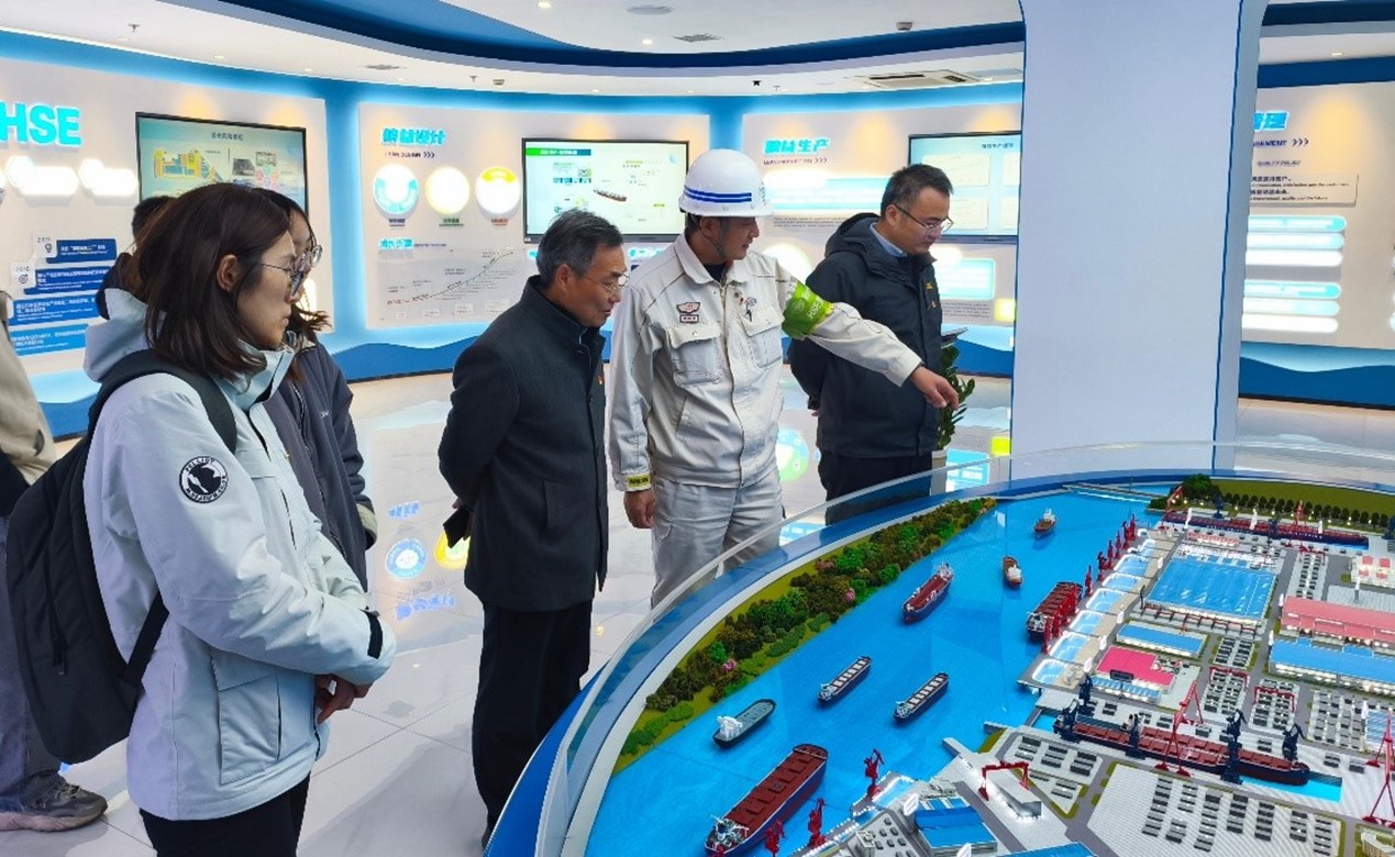 随后,扬州中远海运重工有限公司的工作人员带领全体党员参观了企业文化馆,支部成员深入了解了企业发展历史。同时,支部师生一起参观了正在舾装的集装箱船。