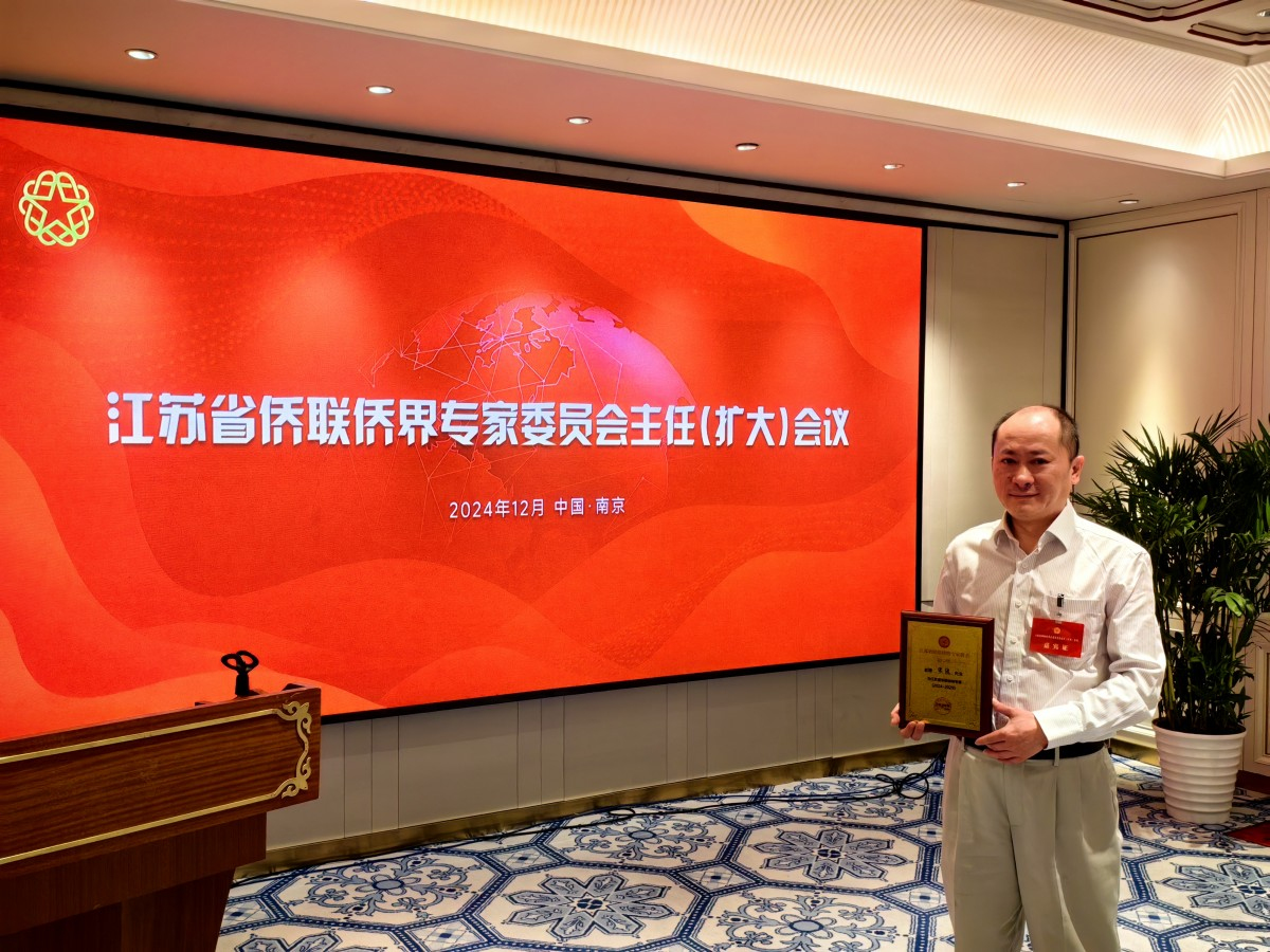 2024年12月26日,威尼斯官网宋波教授受邀参加了江苏省侨联在南京举办的“侨界英才看江苏”活动暨省侨联侨界专家委员会主任(扩大)会议。此次会议,宋波教授认真准备、积极建言献策,还被增聘为省侨联专委会常委。