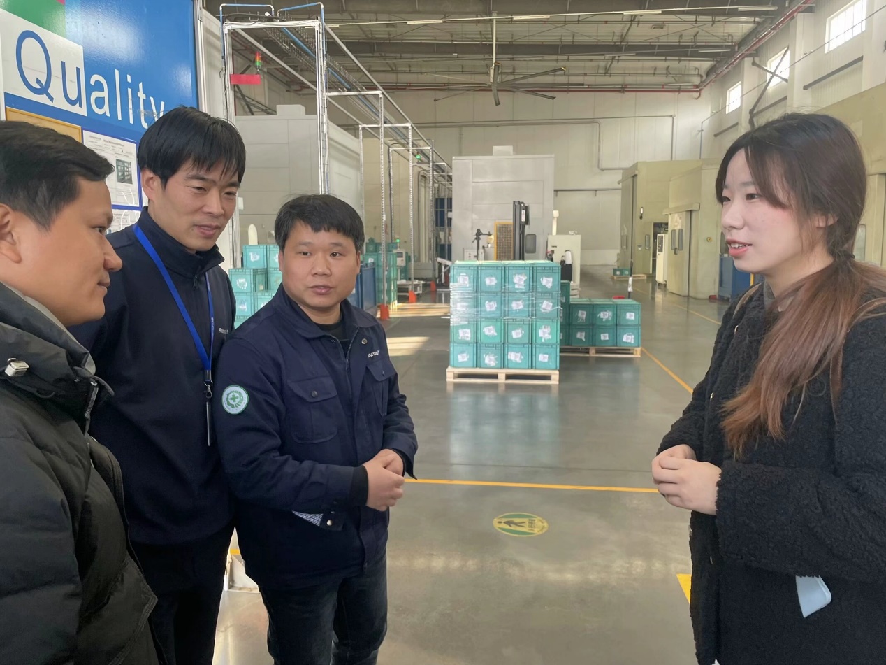 随后,车间负责人刘工带领实践团成员参观了紧固件金属生产车间和自动化分拣生产线。实践团成员首先参观了原材料准备和初步加工区域,详细了解了各种金属材料的选择与处理工艺。接着,团队参观了冲压、热处理、表面涂层制备和自动分拣等关键工序。