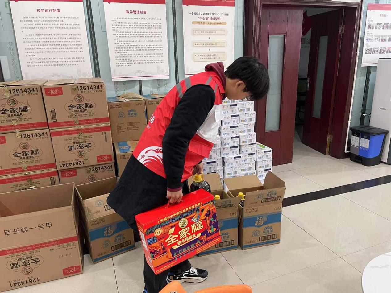 1月21日,王尹等人在江苏省南京市浦口区永宁街道便民服务中心参与物资分发志愿服务。志愿者们将物资分类打包,包括大米、食用油、春联等年货。在分发过程中,他们不仅递上物资,还询问居民生活状况,送上新年祝福。一位领到物资的老奶奶表达了感激之情,认为这些物资非常实用,让人心中感到温暖。这次活动不仅为居民带来了实际好处,也为构建和谐社区环境打下了坚实基础。