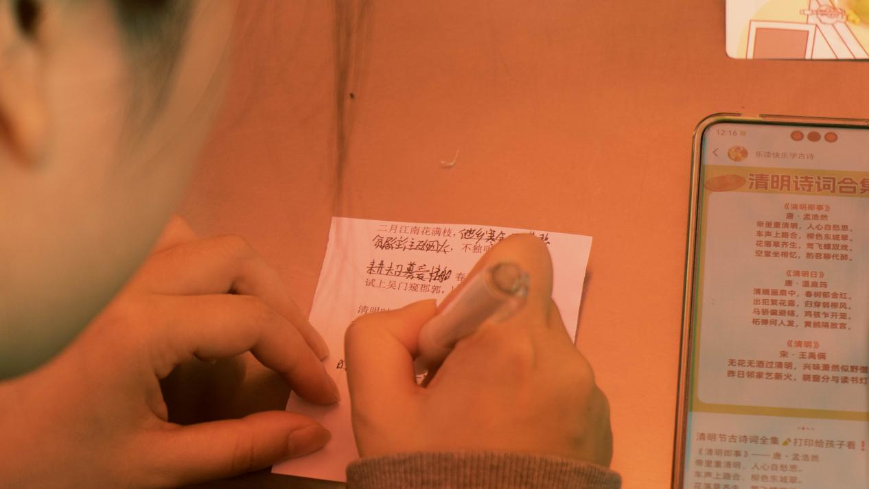 春日诗词雅集区域也是深受同学们喜爱的活动,同学们交流分享自己喜爱的清明主题诗词,同时与现场工作人员进行诗词填空和诗词接龙等趣味互动环节,凭借深厚的诗词储备和敏捷的思维巧妙地接上诗词。从唐诗到宋词,每一句诗词都承载着清明千年的文化底蕴。这次活动,让大家更好地领略到中华优秀传统文化的魅力,激发同学们对古典诗词的兴趣,推动清明文化在青年群体中的传承与发展。