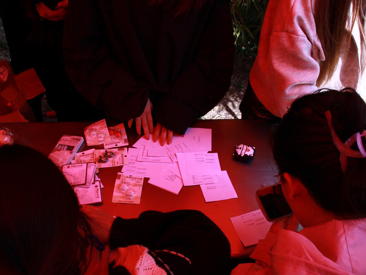 活动开始前,工作人员早早就在西苑食堂门口搭建好了活动场地,桌上整齐摆放着颜料、油纸伞及清明主题诗词集,供同学们创作和参与互动。
