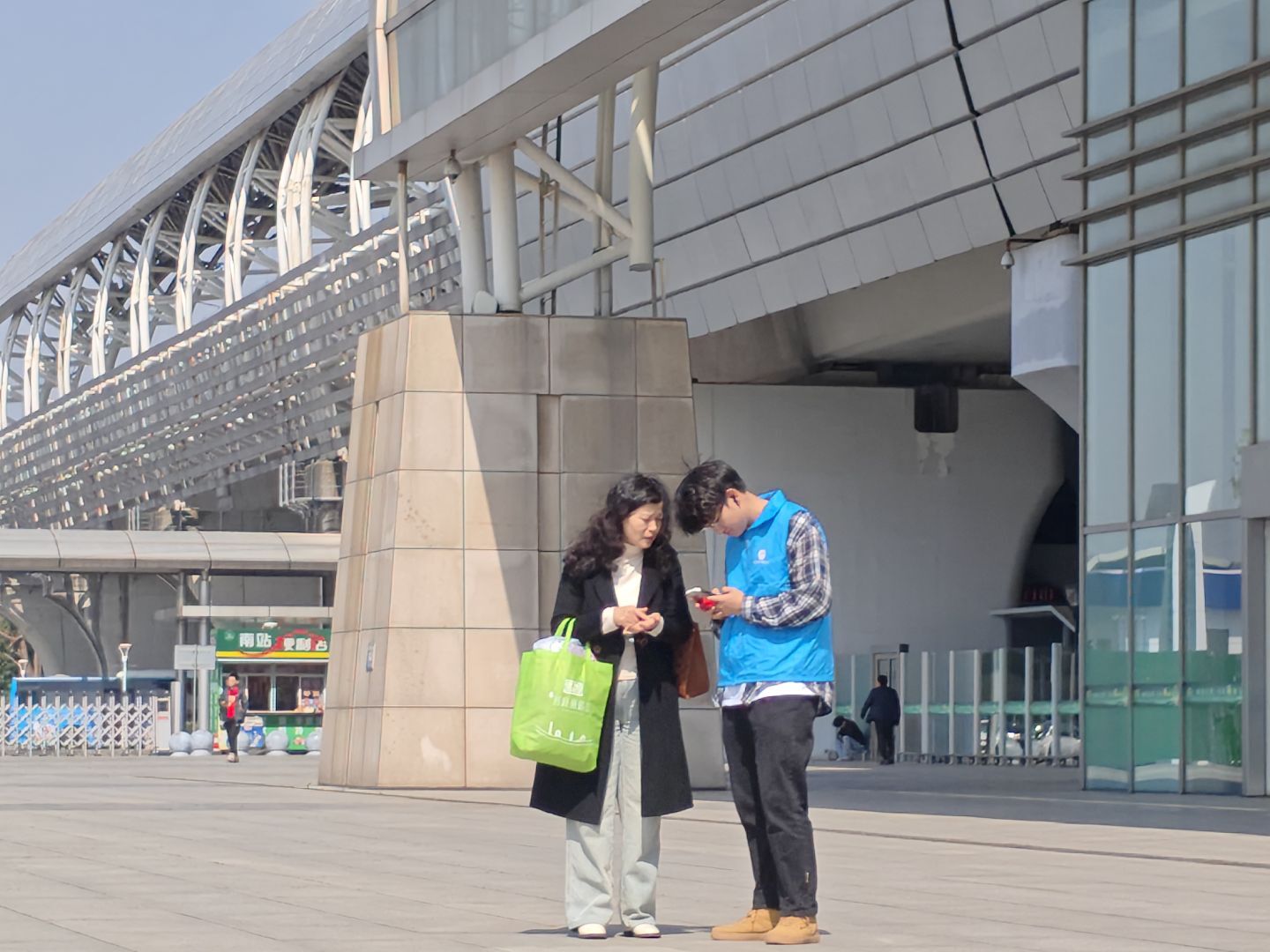 第三组负责票务协助。在自助售票机门口及人工窗口区域,义工们耐心指导旅客操作购票系统,协助处理票务问题。针对老年群体及残障人士,义工们全程陪同办理手续,切实解决“数字鸿沟”难题。