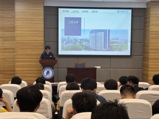 随后,5位2025届考研成功上岸的学长依次登台,带来了精彩纷呈的备考经验分享。他们分别是被河北工业大学录取的王世豪、考入南京理工大学的张庆达、被江苏科技大学录取的肖豪杰、成功上岸湖南大学的袁志文,以及考入江苏大学的丁伟豪。5位学长倾囊相授,分享内容涵盖多个关键维度。从精准的择校技巧,到高效的初试高分策略;从各学科的复习方法,到跨专业备考的实用技巧;从复试阶段的心态调整,到面试环节的制胜要点,全方位为学弟学妹们答疑解惑。他们毫无保留的经验分享,不仅带来了实用的备考方法与技巧,更传递出坚定的信念,让在场同学深受鼓舞,备考信心倍增。互动环节中,李文达老师围绕专业课复习重点、复试失利常见原因等问题深入提问。在一来一往的交流中,学长们分享了许多备考过程中攻坚克难的奋斗故事,这些真实经历为同学们提供了宝贵的借鉴,也让大家对考研之路有了更全面、更深刻的认识。