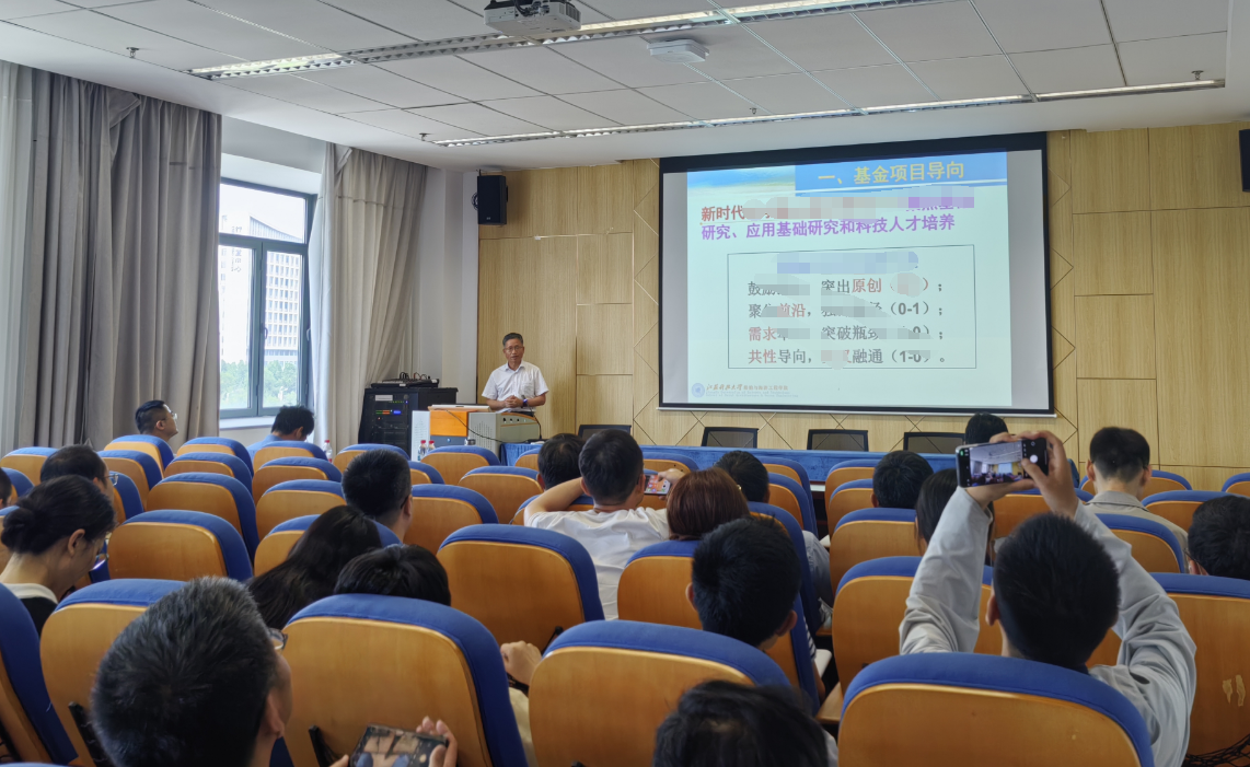 科学技术研究院唐盛副院长首先介绍了学校在国家自然科学基金申报方面的整体情况,着重分析了青年基金和面上基金的获批数据。数据显示,近年来学校青年基金立项数量稳定增长,但“青转面”的成功率有待提高。他强调,青转面需申请人长期“修炼内功”、也需科研团队“协同作战”、学校/学院/学科“协同培养”;同时,唐盛指出“青转面”不仅是科研人员个人科研生涯的重要跨越,也是对学校整体科研实力重要体现。