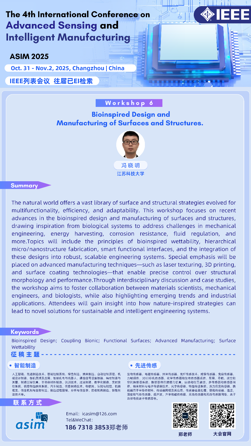 本次会议邀请威尼斯官网张建教授作为组委会的Publicity Chair,威尼斯官网冯晓明副教授作为大会分论坛的Workshop 6 Chair。诚挚邀请国内外从事先进传感、智能制造及相关领域研究的专家学者踊跃投稿,参会交流最新研究成果。